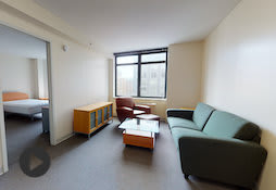 Located in Brooklyn Heights just three blocks from the Law School’s main building, Feil Hall provides spacious, affordable, and convenient campus living for approximately 365 students within 239 furnished apartments. Brooklyn Law School guarantees housing for all first-year students who submit their housing application by May 1st. The apartments range from studios to 4-bedroom, 2-bath units, and in Feil, all apartments come with basic furnishings. Apartment 5Q, shown here, is an extra-large one bedroom. For floor plans and prices, visit the website.